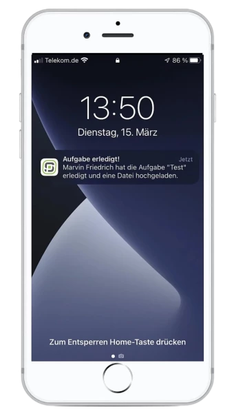 Immer up-to-date, denn du bekommst Infos über neue Termine, Aufgaben oder News per Push auf dein Smartphone.