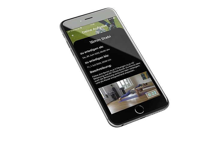Players receive task notifications directly on their smartphones and can complete the exercises within the set timeframe.