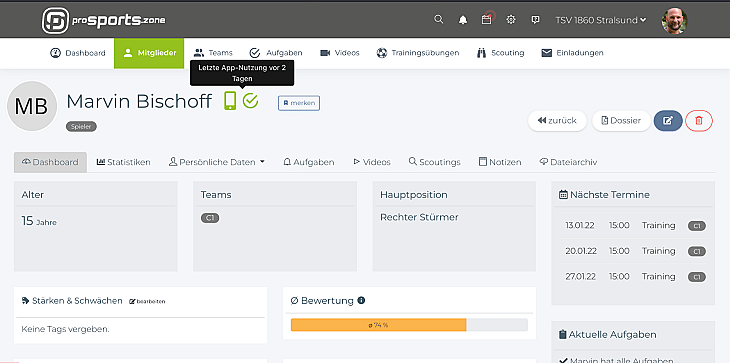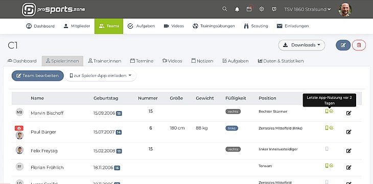 With proSports.Zone, you also have support in the team for these supposedly minor details, which are important for team communication and in the everyday life of coaches and take up time. Data instead of gut feeling, knowledge instead of just a hunch.